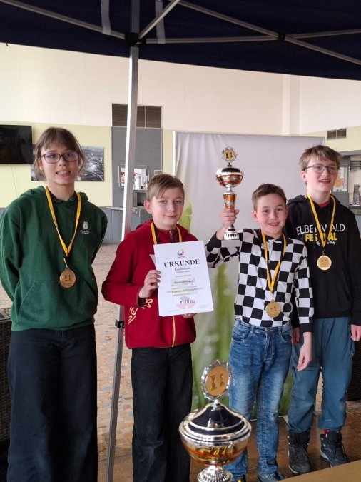 Das WK IV-TeamDie Siegermannschaft des Teams der WK III bestand aus Gustav Polzin und Dongwoo Han (SV Saalespringer Halle), Hendrick Ehrath (SG 2011 Sennewitz) und Clemens Hüttenmüller (AG Schach des GCG).