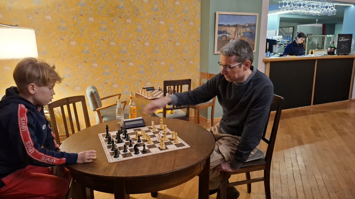Erstmal ließ sich auch keiner die Wurst vom Teller ziehen. So stand es nach 2 1/2 Stunden 0:0. In der Partie David Fritzsche gegen Michael Oswald kam David leider gegen eine Dame Turm Batterie nicht mehr an. (0:1). Lukas Schadeberg und Mario Windolf einigten sich auf Remis. Beide sind damit diese Saison ungeschlagen, wobei Lukas 4,5 aus 5 und Mario 3,5 aus 5 vorweisen kann. Andrea Glaser musste gegen Florian Böhm im Italiener einem Abtausch Läufer + Springer gegen Turm + Bauer zustimmen. Leider konnte Florian die Stellung danach verwerten. Revanchieren mit Italienisch konnte sich dafür Johannes Knüpfer gegen Luke Fathke. Diesmal ging der Punkt nach Halle. Damit konnte ich aufatmen. Denn Marten Lischka stand gegen Lars Horvat gut und konnte dann auch den ganzen Punkt behalten. Marten ist aktuell mit 5 aus 5 der Topscorer der Saalespringer und auch in der gesamten Landesliga B. Ich (Marco Ruhs) kam gegen Friedrich Lautenschläger ziemlich unter die Räder. Unter Zeitnot fand Friedrich glücklicherweise nicht die beste Fortsetzung und so einigten wir uns nach 59 Zügen auf Remis. Carlo Patzschke und Christopher Schröter benötigten bis zum Ziel zwar nur 56 Züge, dafür dauerte die Partie jedoch zeitlich länger. Erfreulicherweise hielt Carlo den ganzen Punkt in Halle. In zeitlicher Hinsicht und auch in der Anzahl der Züge (73) wurde das noch von Thomas Hentzgen und Niclas Rohde getoppt. Thomas musste leider die Qualität geben und kämpfte im Endpspiel ums Remis. Leider vergebens.